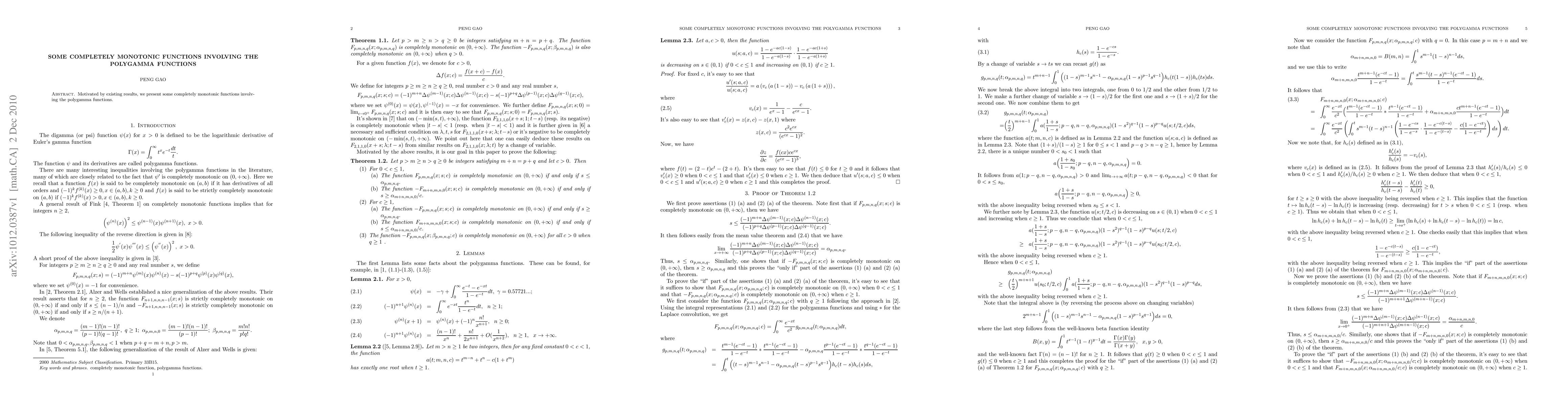 Summary: This paper introduces completely monotonic functions that incorporate polygamma functions, building on previous findings in the field. The study aims to extend the understanding of these functions through new mathematical formulations.