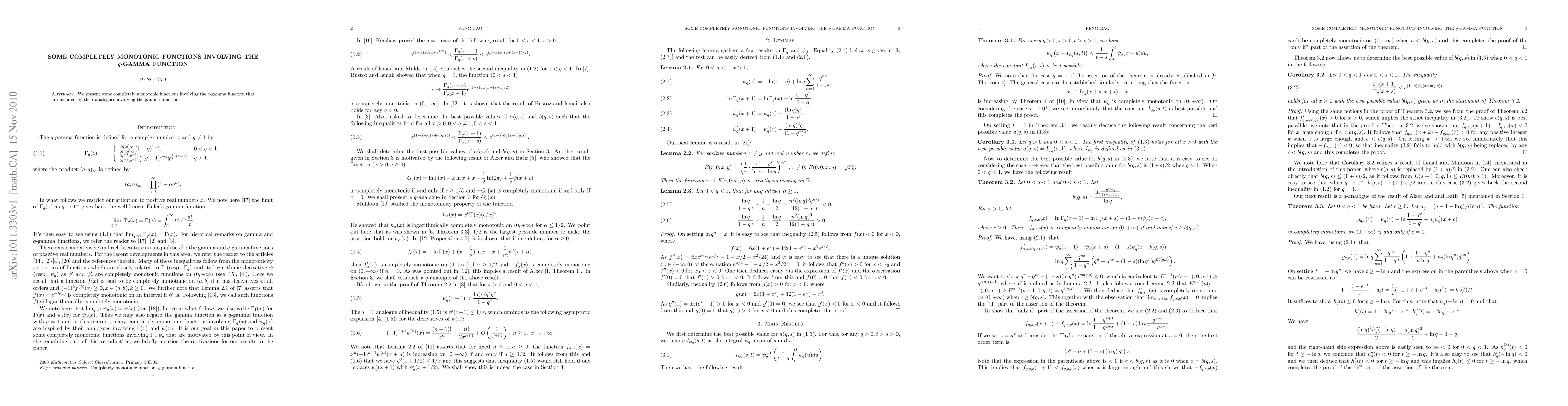 Summary: This paper introduces completely monotonic functions based on the $q$-gamma function, drawing inspiration from analogous functions involving the traditional gamma function. The study aims to extend the properties of these functions in the context of $q$-analysis.