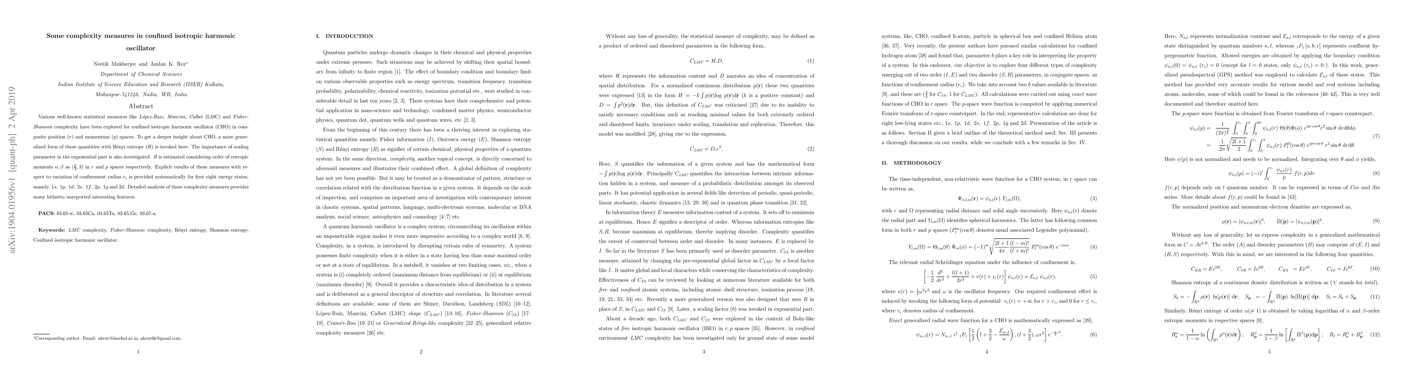 This paper explores various statistical complexity measures, including LMC and Fisher-Shannon complexity, for confined isotropic harmonic oscillators in position and momentum spaces, employing generalized Rényi entropy. Detailed analysis reveals unreported features of complexity measures with respect to varying confinement radius across the first eight energy states.