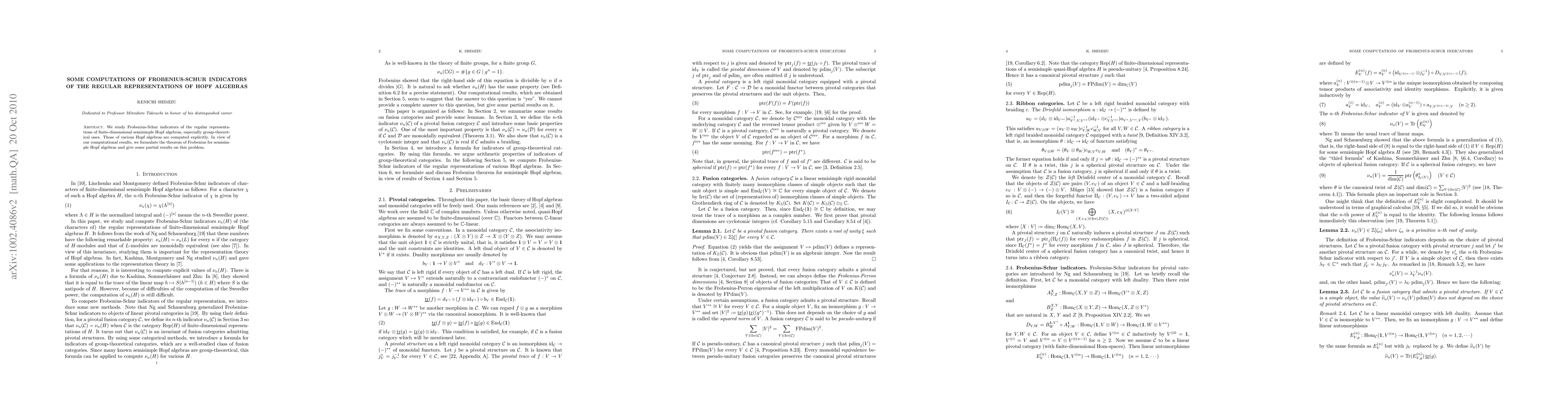 The paper introduces detailed computations and a theorem for Frobenius-Schur indicators of regular representations of Hopf algebras, providing a framework for understanding their arithmetic properties.