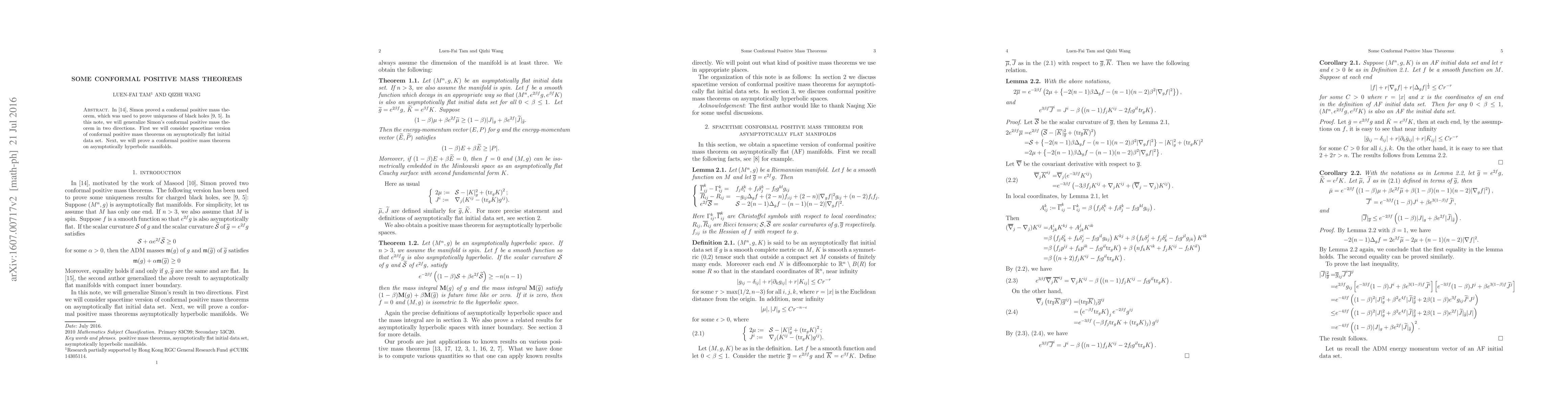 W. Simon proved a conformal positive mass theorem, which was used to prove uniqueness of black holes later. In this note, we will generalize Simon's conformal positive mass theorem in two directions. First we will consider spacetime version of conformal positive mass theorems on asymptotically flat initial data set. Next, we will prove a conformal positive mass theorem on asymptotically hyperbolic manifolds.