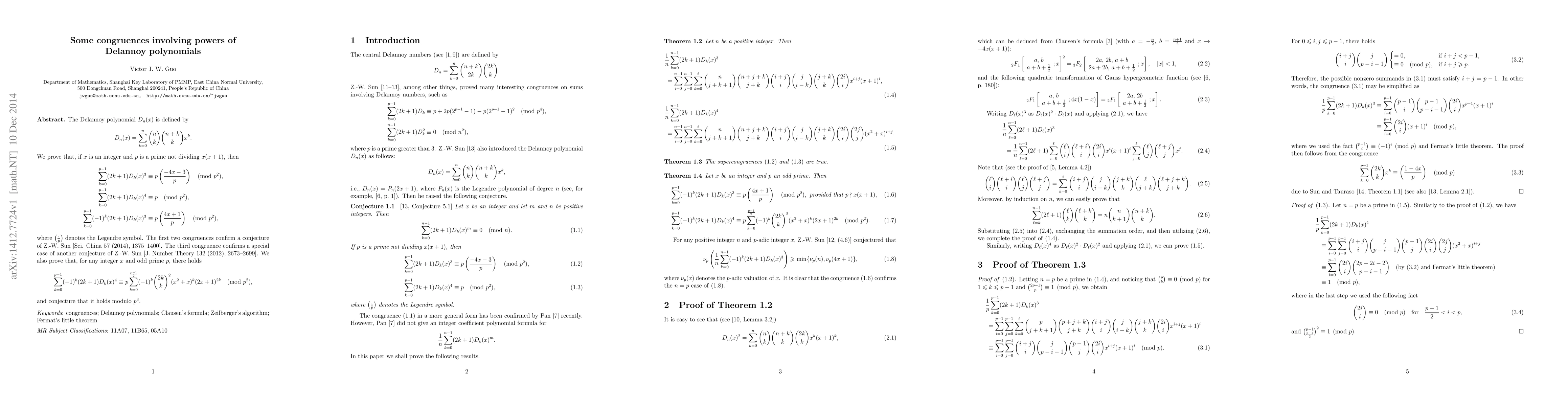 Researchers proved three congruences involving Delannoy polynomials, confirming conjectures of Z.-W. Sun and extending a result modulo $p^2$, with implications for number theory.