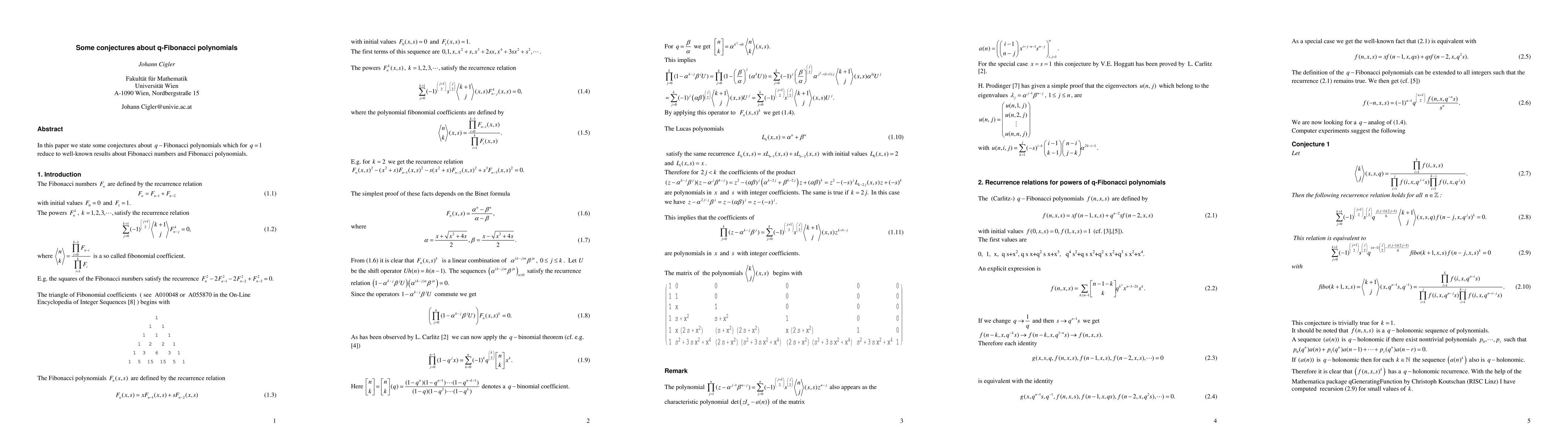 This paper proposes several conjectures regarding q-Fibonacci polynomials, highlighting their connection to traditional Fibonacci numbers and polynomials when q equals 1. The study aims to extend existing Fibonacci theory into the q-domain.