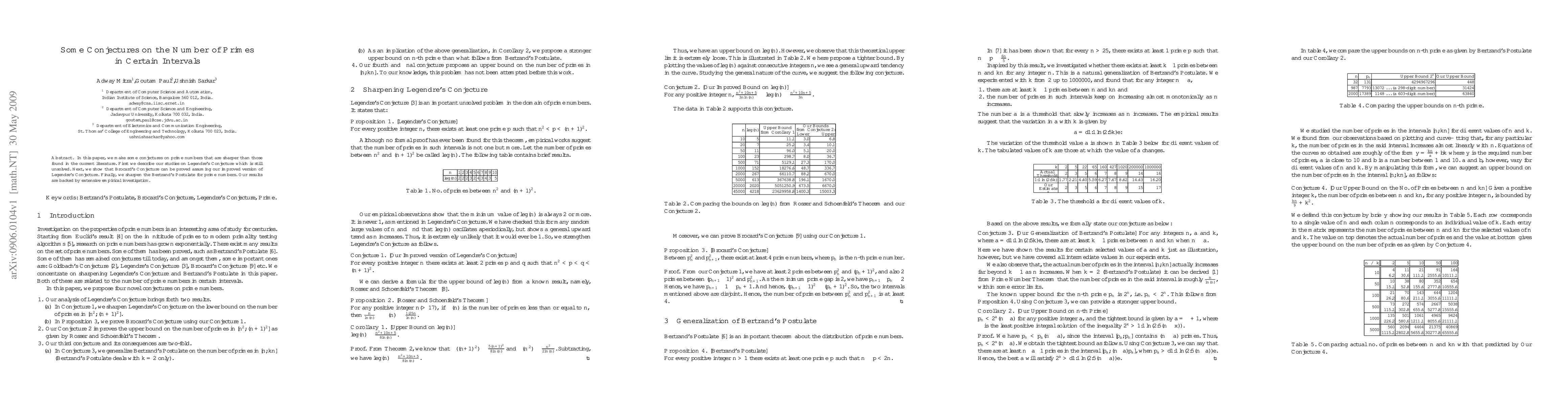 In this paper, we make some conjectures on prime numbers that are sharper than those found in the current literature. First we describe our studies on Legendre's Conjecture which is still unsolved. Next, we show that Brocard's Conjecture can be proved assuming our improved version of Legendre's Conjecture. Finally, we sharpen the Bertrand's Postulate for prime numbers. Our results are backed by extensive empirical investigation.
