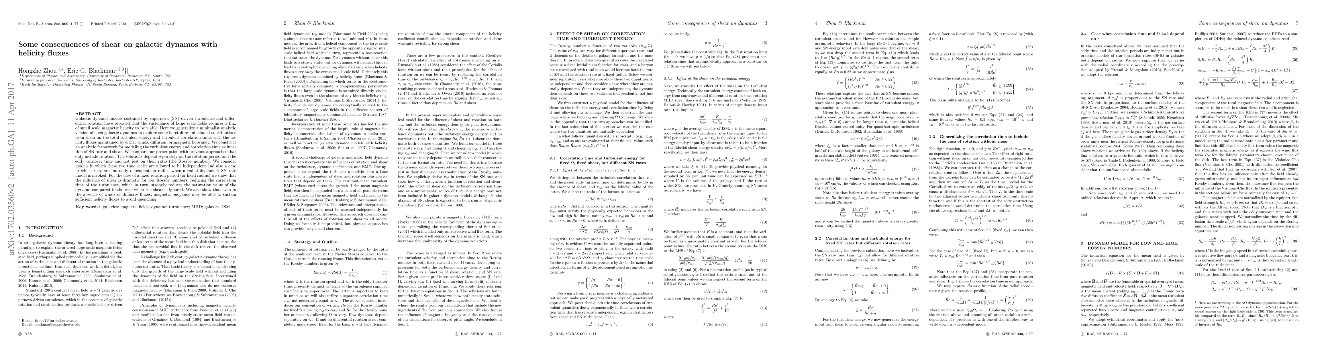 This paper explores the impact of shear on galactic dynamos driven by supernova turbulence and differential rotation, showing that shear influences turbulent energy and correlation time. It finds that shear significantly reduces the turbulence correlation time and, consequently, the saturation value of the dynamo, especially for low Rossby numbers.