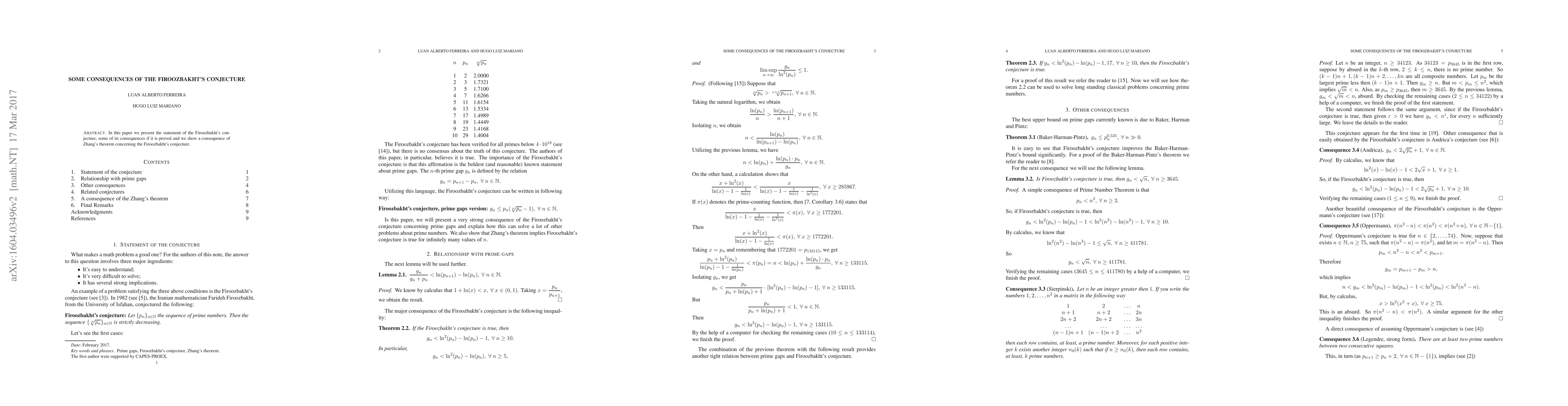 In this paper we present the statement of the Firoozbakht's conjecture, some of its consequences if it is proved and we show a consequence of Zhang's theorem concerning the Firoozbakht's conjecture.
