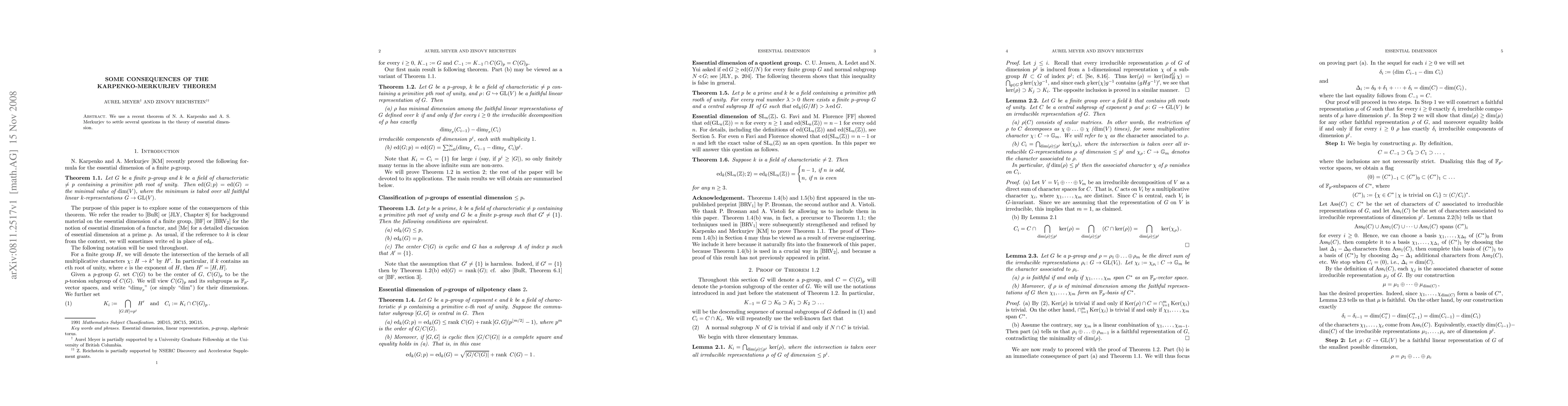 Summary: This paper applies the Karpenko-Merkurjev theorem to resolve several open questions in the theory of essential dimension, providing new insights into the subject.