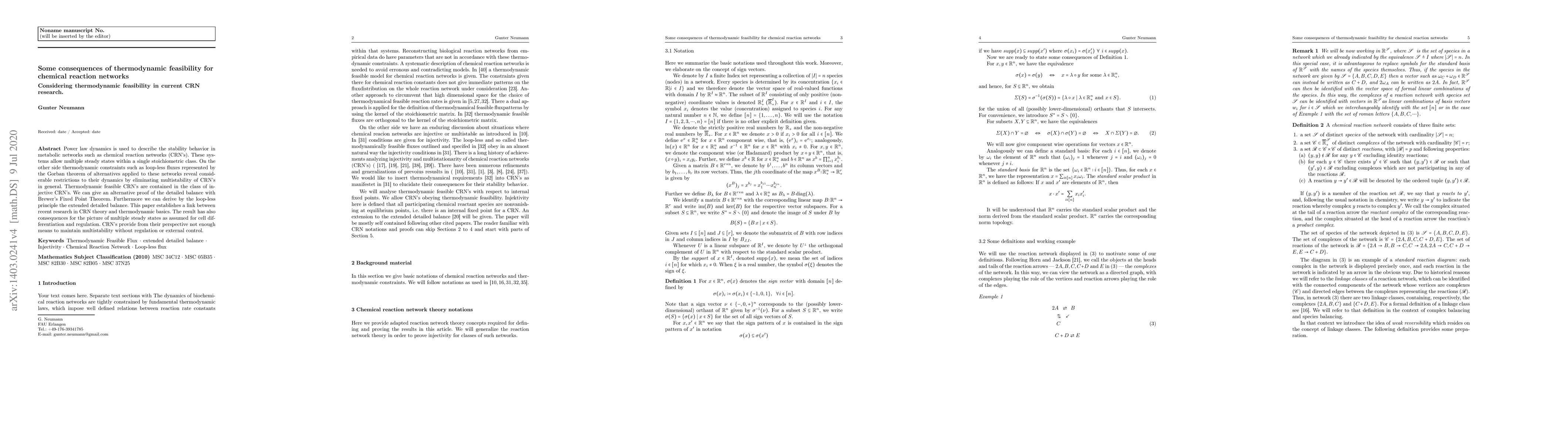 Power law dynamics is used to describe the stability behavior in metabolic networks such as chemical reaction networks (CRN's). These systems allow multiple steady states within a single stoichiometric class. On the other side thermodynamic constraints such as loop-less fluxes represented by the Gorban theorem of alternatives applied to these networks reveal considerable restrictions to their dynamics by eliminating multistability of CRN's in general. Thermodynamic feasible CRN's are contained in the class of injective CRN's. We can give an alternative proof of the detailed balance with Brewer's Fixed Point Theorem. Furthermore we can derive by the loop-less principle the extended detailed balance. This paper establishes a link between recent research in CRN theory and thermodynamic basics. The result has also consequences for the picture of multiple steady states as assumed for cell differentiation and regulation. CRN's provide from their perspective not enough means to maintain multistability without regulation or external control.