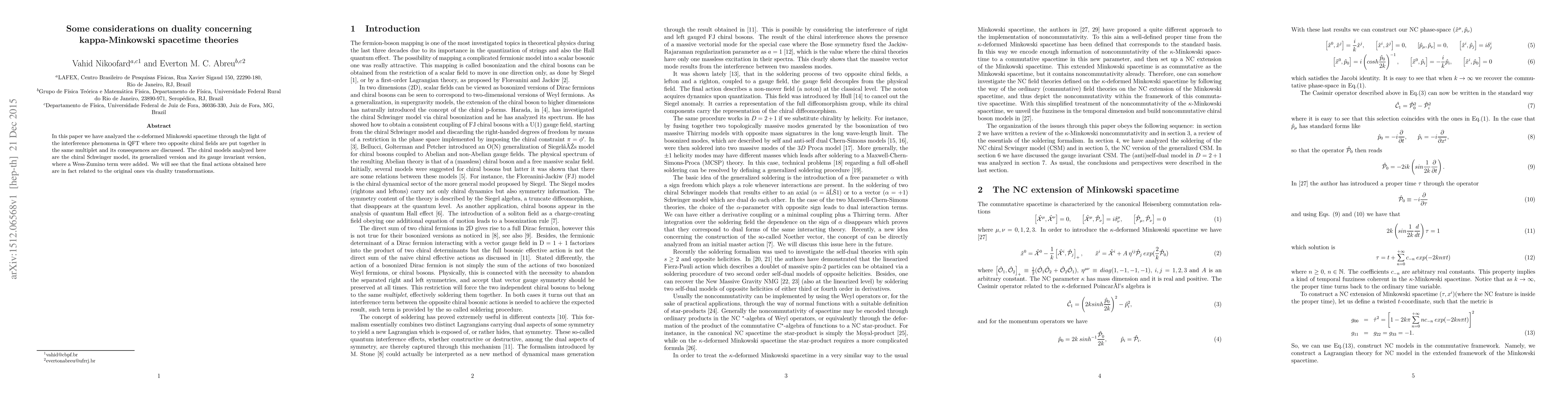 This paper explores $\kappa$-deformed Minkowski spacetime by examining interference phenomena in quantum field theory involving chiral fields. It discusses the chiral Schwinger model and its variants, revealing that the resulting actions are dual to the original ones through specific transformations.