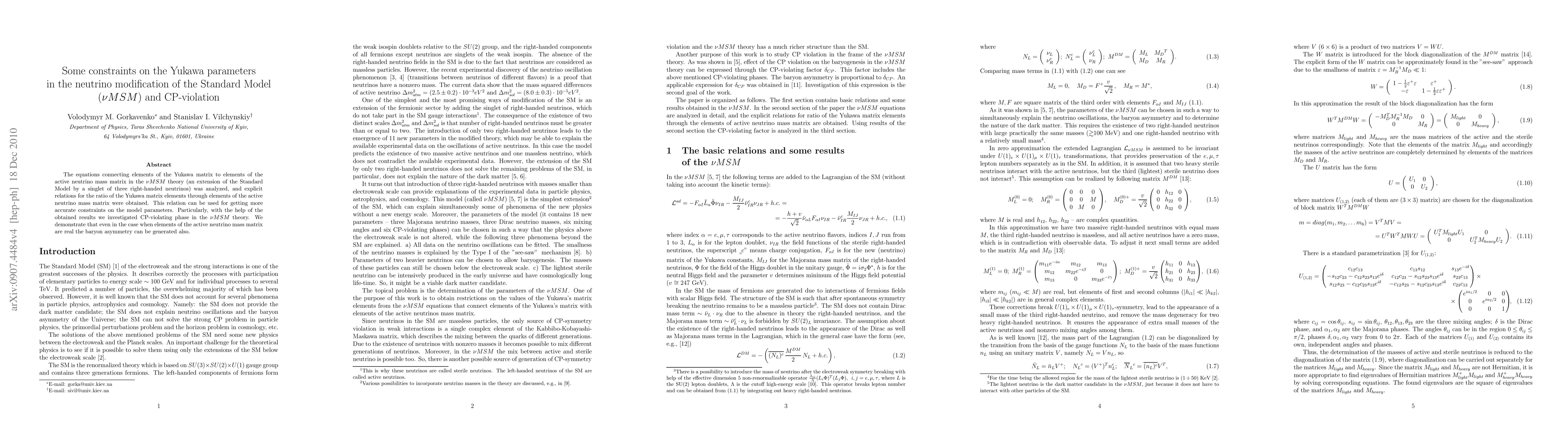 Researchers in a neutrino modification of the Standard Model found explicit relations for connecting Yukawa matrix elements to active neutrino mass matrix elements, which can help constrain model parameters and explore CP-violation.
