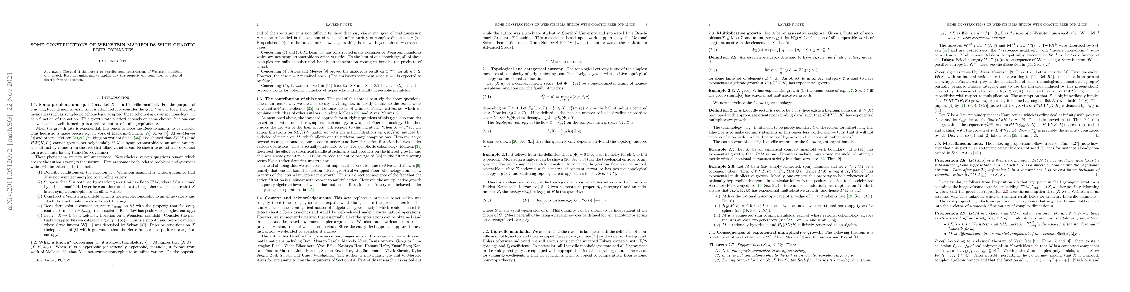 The goal of this note is to describe some constructions of Weinstein manifolds with chaotic Reeb dynamics, and to explain how this property can sometimes be detected directly from the skeleton.