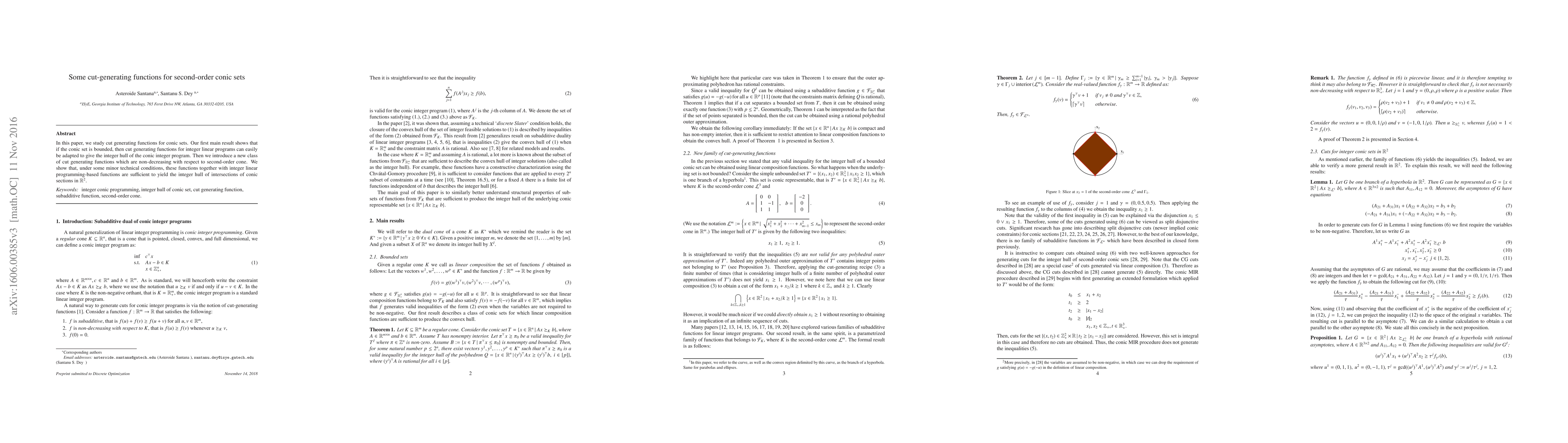 In this paper, we study cut generating functions for conic sets. Our first main result shows that if the conic set is bounded, then cut generating functions for integer linear programs can easily be adapted to give the integer hull of the conic integer program. Then we introduce a new class of cut generating functions which are non-decreasing with respect to second-order cone. We show that, under some minor technical conditions, these functions together with integer linear programming-based functions are sufficient to yield the integer hull of intersections of conic sections in $\mathbb{R}^2$.