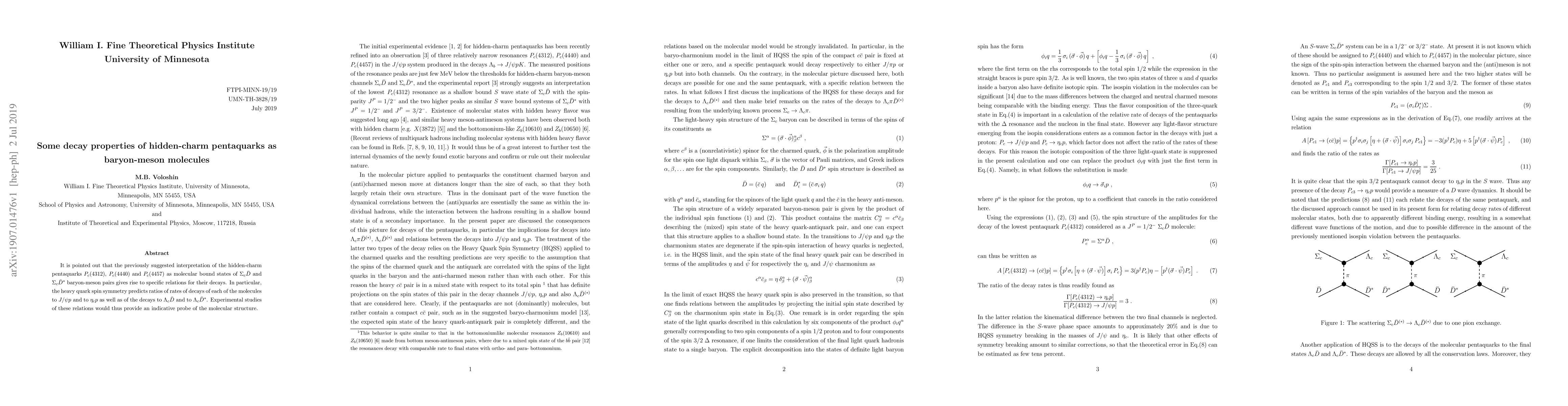 This paper explores the decay properties of hidden-charm pentaquarks $P_c(4312)$, $P_c(4440)$, and $P_c(4457)$ interpreted as baryon-meson molecules. It predicts specific decay ratios based on heavy quark spin symmetry, suggesting that experimental verification of these ratios could confirm their molecular structure.