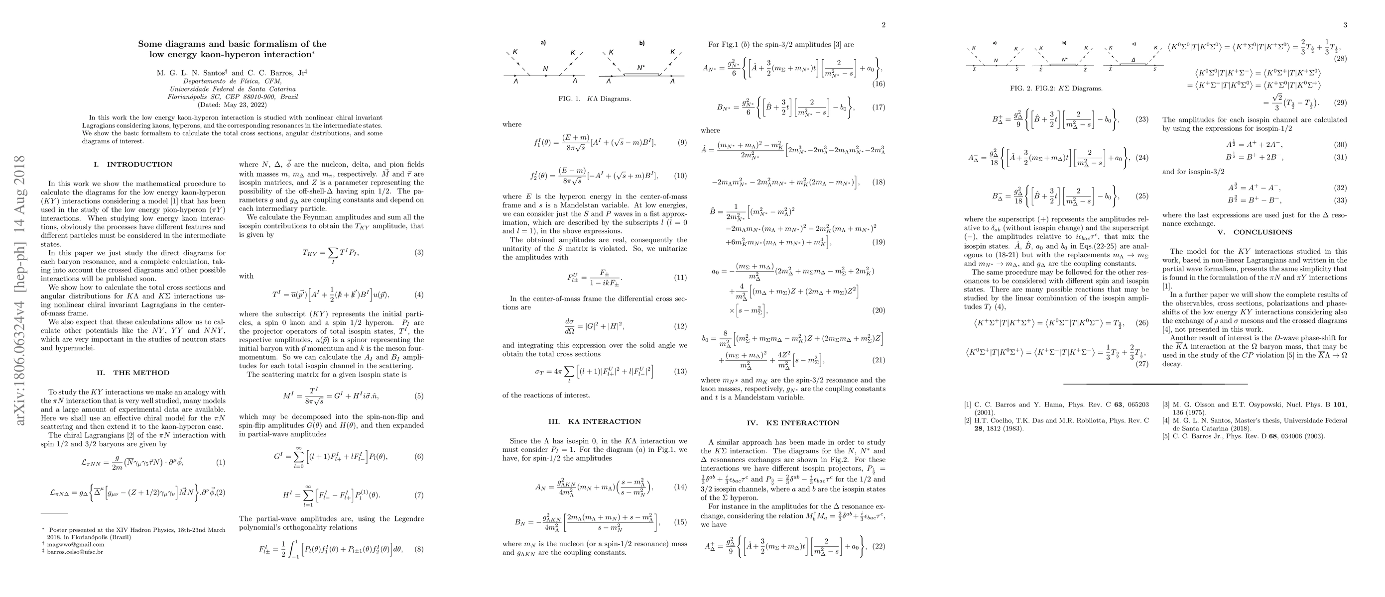 Researchers studied low-energy interactions between kaons and hyperons using nonlinear chiral invariant Lagrangians, calculating total cross sections and angular distributions.