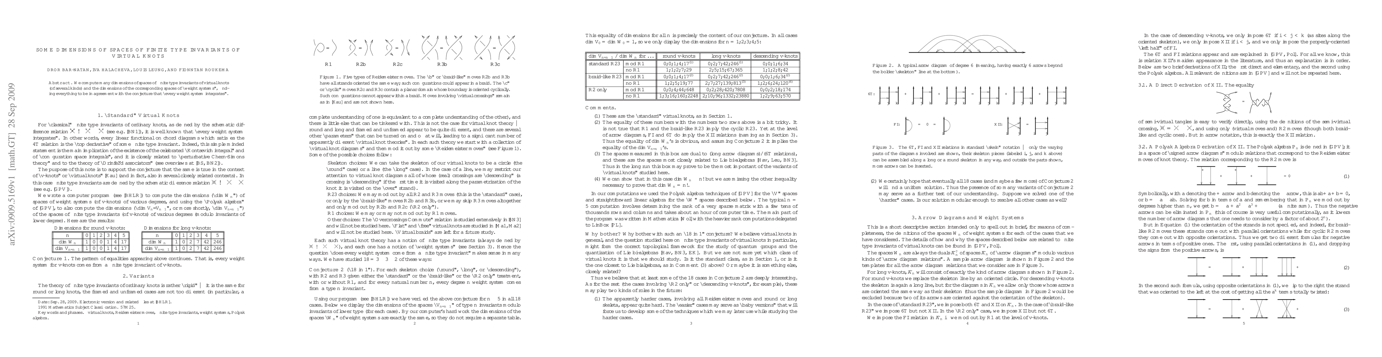 This paper calculates the dimensions of spaces for finite type invariants of various virtual knots and their associated "weight systems," confirming the conjecture that every weight system can integrate. The findings support the theoretical framework linking these dimensions and weight systems.