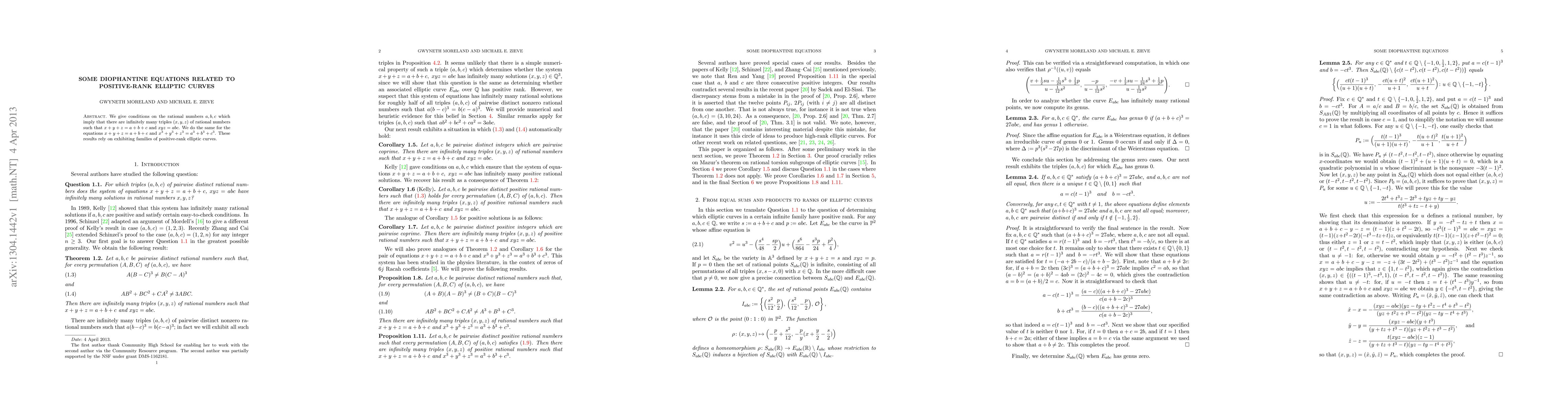 We give conditions on the rational numbers a,b,c which imply that there are infinitely many triples (x,y,z) of rational numbers such that x+y+z=a+b+c and xyz=abc. We do the same for the equations x+y+z=a+b+c and x^3+y^3+z^3=a^3+b^3+c^3. These results rely on exhibiting families of positive-rank elliptic curves.