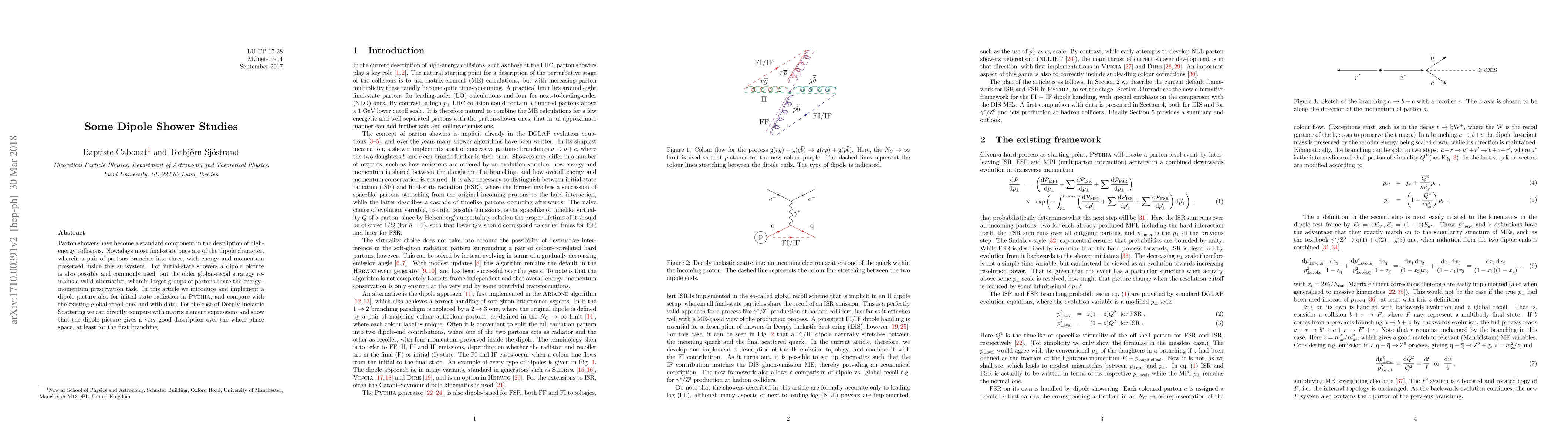 Parton showers have become a standard component in the description of high-energy collisions. Nowadays most final-state ones are of the dipole character, wherein a pair of partons branches into three, with energy and momentum preserved inside this subsystem. For initial-state showers a dipole picture is also possible and commonly used, but the older global-recoil strategy remains a valid alternative, wherein larger groups of partons share the energy--momentum preservation task. In this article we introduce and implement a dipole picture also for initial-state radiation in PYTHIA, and compare with the existing global-recoil one, and with data. For the case of Deeply Inelastic Scattering we can directly compare with matrix element expressions and show that the dipole picture gives a very good description over the whole phase space, at least for the first branching.