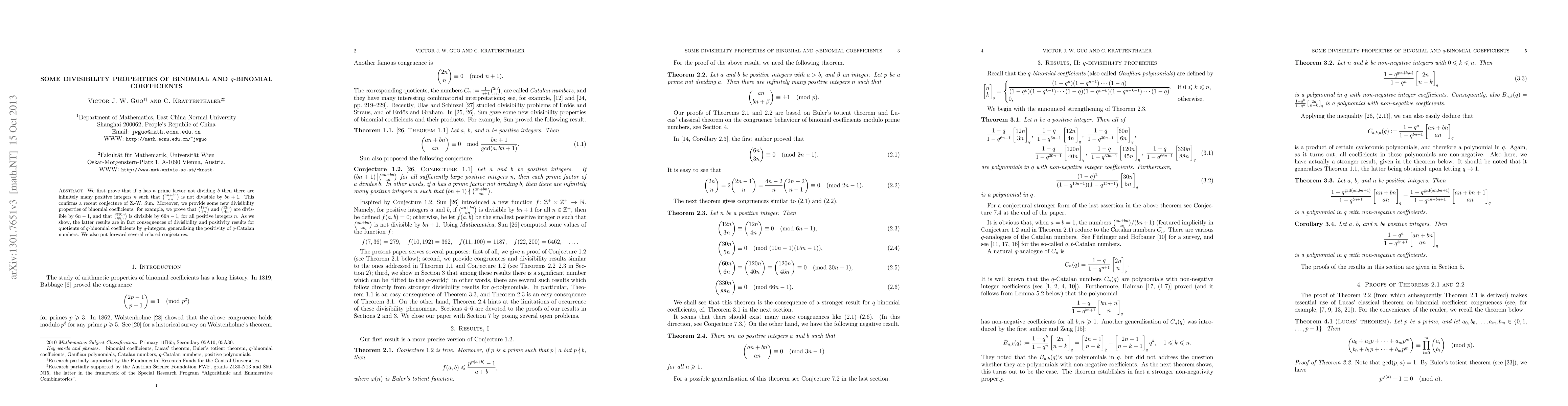 We first prove that if $a$ has a prime factor not dividing $b$ then there are infinitely many positive integers $n$ such that $\binom {an+bn} {an}$ is not divisible by $bn+1$. This confirms a recent conjecture of Z.-W. Sun. Moreover, we provide some new divisibility properties of binomial coefficients: for example, we prove that $\binom {12n} {3n}$ and $\binom {12n} {4n}$ are divisible by $6n-1$, and that $\binom {330n} {88n}$ is divisible by $66n-1$, for all positive integers $n$. As we show, the latter results are in fact consequences of divisibility and positivity results for quotients of $q$-binomial coefficients by $q$-integers, generalizing the positivity of $q$-Catalan numbers. We also put forward several related conjectures.