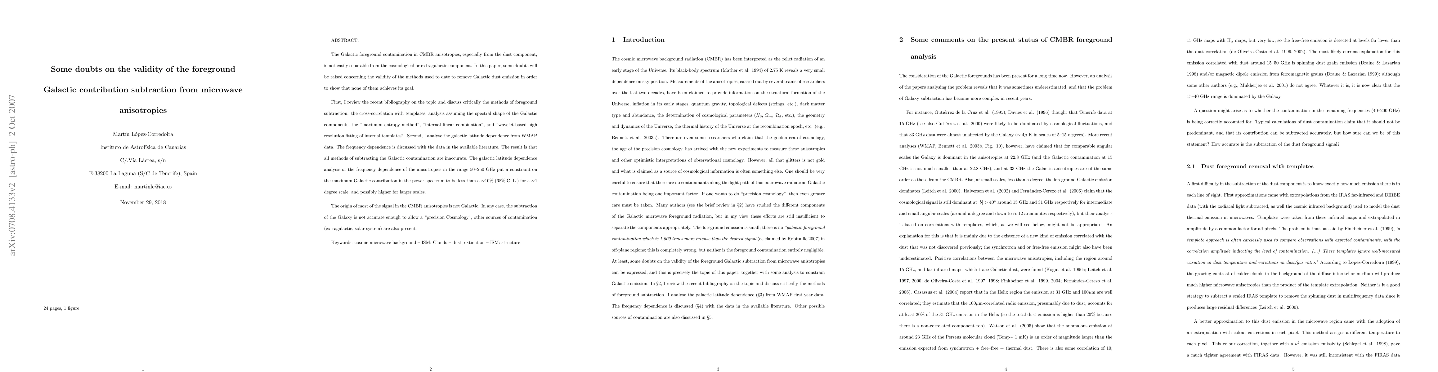 The Galactic foreground contamination in CMBR anisotropies, especially from the dust component, is not easily separable from the cosmological or extragalactic component. In this paper, some doubts will be raised concerning the validity of the methods used to date to remove Galactic dust emission in order to show that none of them achieves its goal. First, I review the recent bibliography on the topic and discuss critically the methods of foreground subtraction: the cross-correlation with templates, analysis assuming the spectral shape of the Galactic components, the "maximum entropy method", "internal linear combination", and "wavelet-based high resolution fitting of internal templates". Second, I analyse the galactic latitude dependence from WMAP data. The frequency dependence is discussed with the data in the available literature. The result is that all methods of subtracting the Galactic contamination are inaccurate. The galactic latitude dependence analysis or the frequency dependence of the anisotropies in the range 50-250 GHz put a constraint on the maximum Galactic contribution in the power spectrum to be less than a ~10% (68% C. L.) for a ~1 degree scale, and possibly higher for larger scales. The origin of most of the signal in the CMBR anisotropies is not Galactic. In any case, the subtraction of the Galaxy is not accurate enough to allow a "precision Cosmology"; other sources of contamination (extragalactic, solar system) are also present.