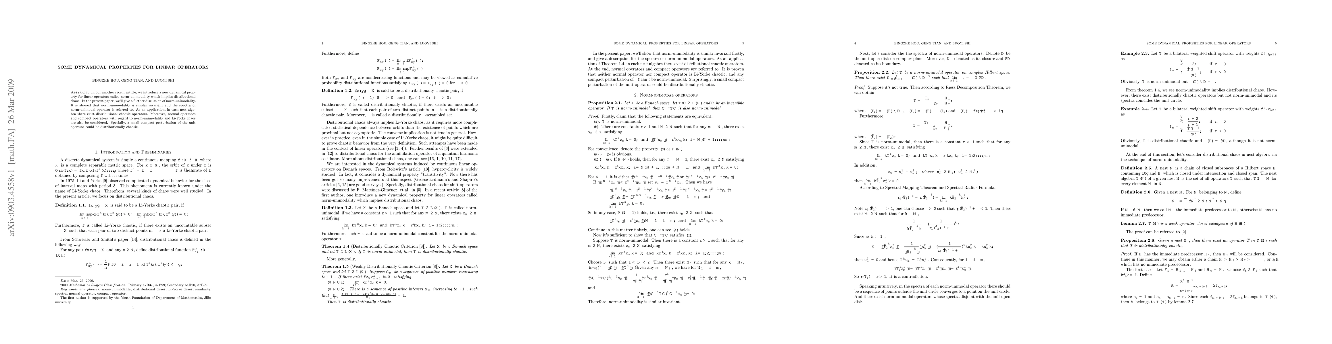 In our another recent article, we introduce a new dynamical property for linear operators called norm-unimodality which implies distributional chaos. In the present paper, we'll give a further discussion of norm-unimodality. It is showed that norm-unimodality is similar invariant and the spectra of norm-unimodal operator is referred to. As an application, in each nest algebra there exist distributional chaotic operators. Moreover, normal operators and compact operators with regard to norm-unimodality and Li-Yorke chaos are also be considered. Specially, a small compact perturbation of the unit operator could be distributionally chaotic.