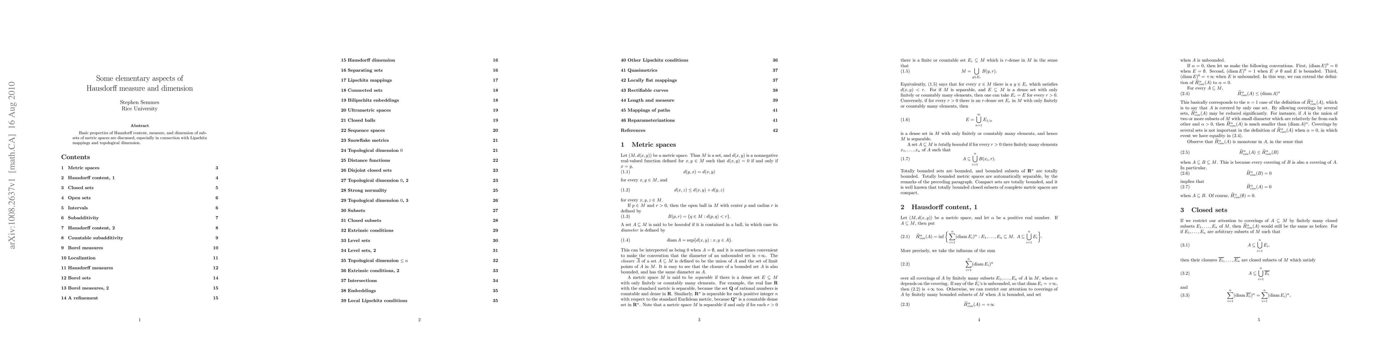 Summary: This paper explores fundamental properties of Hausdorff measure and dimension, focusing on their relationships with Lipschitz mappings and topological dimension in metric spaces. It provides insights into how these measures characterize the size and complexity of subsets.