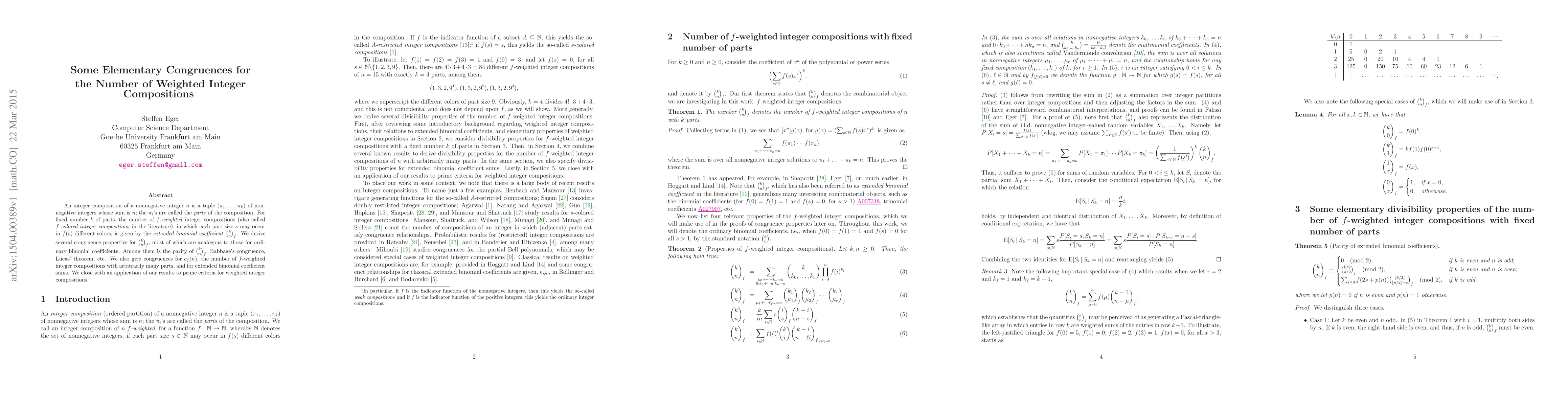 This paper explores congruence properties for $f$-weighted integer compositions, analogous to those for ordinary binomial coefficients, including Babbage's congruence and Lucas' theorem. It also applies these results to derive prime criteria for weighted integer compositions.