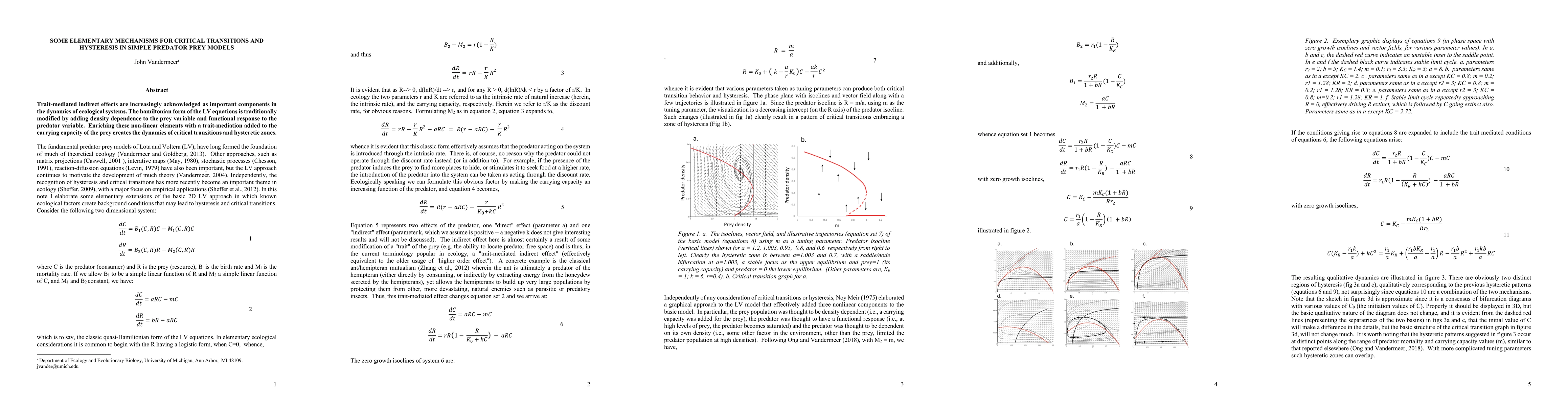 Trait-mediated indirect effects are increasingly acknowledged as important components in the dynamics of ecological systems. The hamiltonian form of the LV equations is traditionally modified by adding density dependence to the prey variable and functional response to the predator variable. Enriching these non-linear elements with a trait-mediation added to the carrying capacity of the prey creates the dynamics of critical transitions and hysteretic zones.