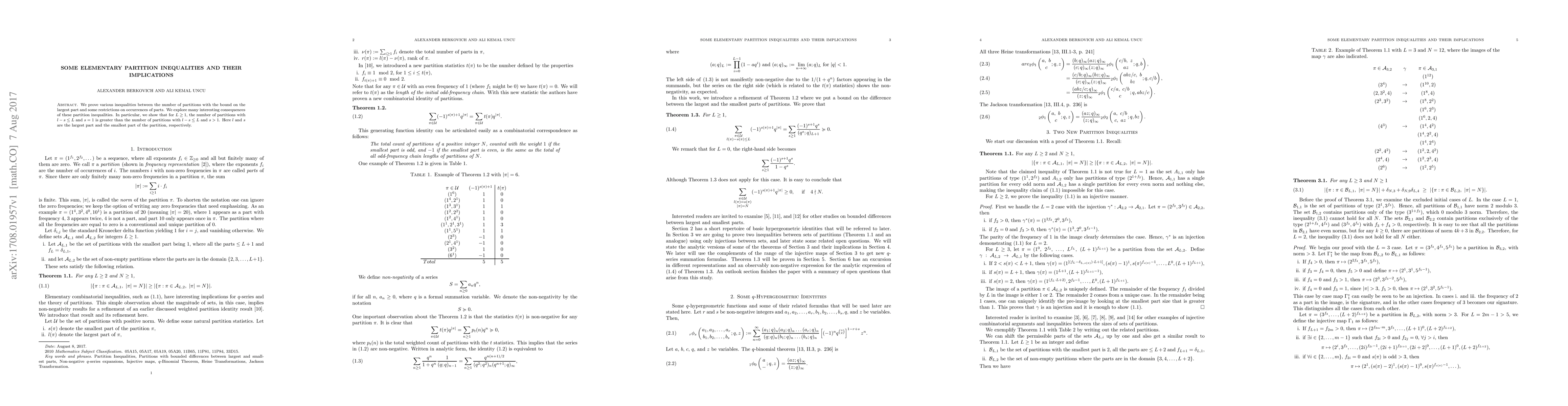 We prove various inequalities between the number of partitions with the bound on the largest part and some restrictions on occurrences of parts. We explore many interesting consequences of these partition inequalities. In particular, we show that for $L\geq 1$, the number of partitions with $l-s \leq L$ and $s=1$ is greater than the number of partitions with $l-s\leq L$ and $s>1$. Here $l$ and $s$ are the largest part and the smallest part of the partition, respectively.