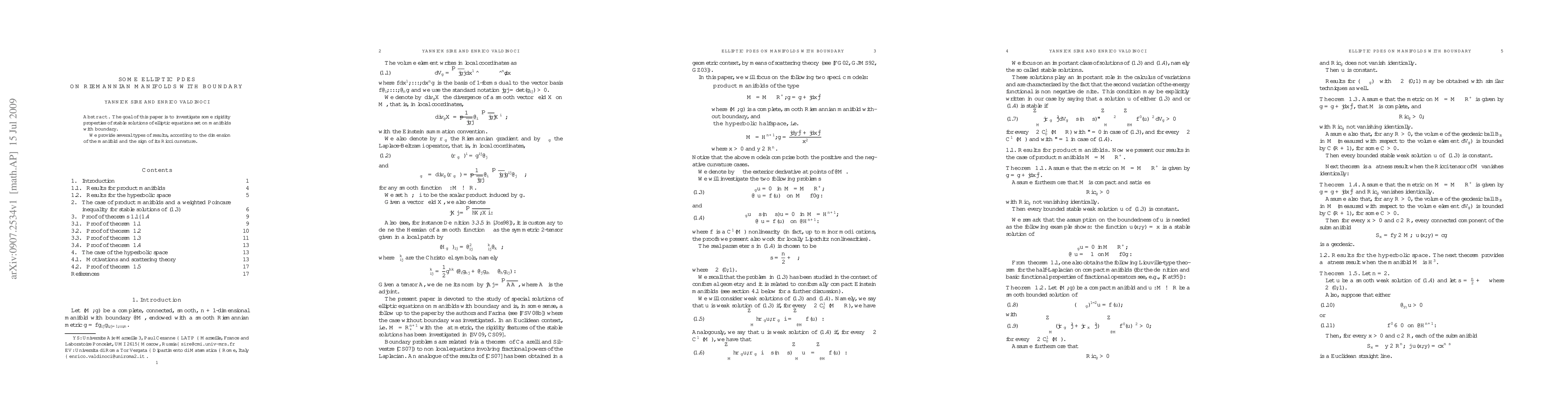 This paper explores rigidity properties of stable solutions to elliptic partial differential equations on Riemannian manifolds with boundary, presenting results that vary based on the manifold's dimension and Ricci curvature sign.