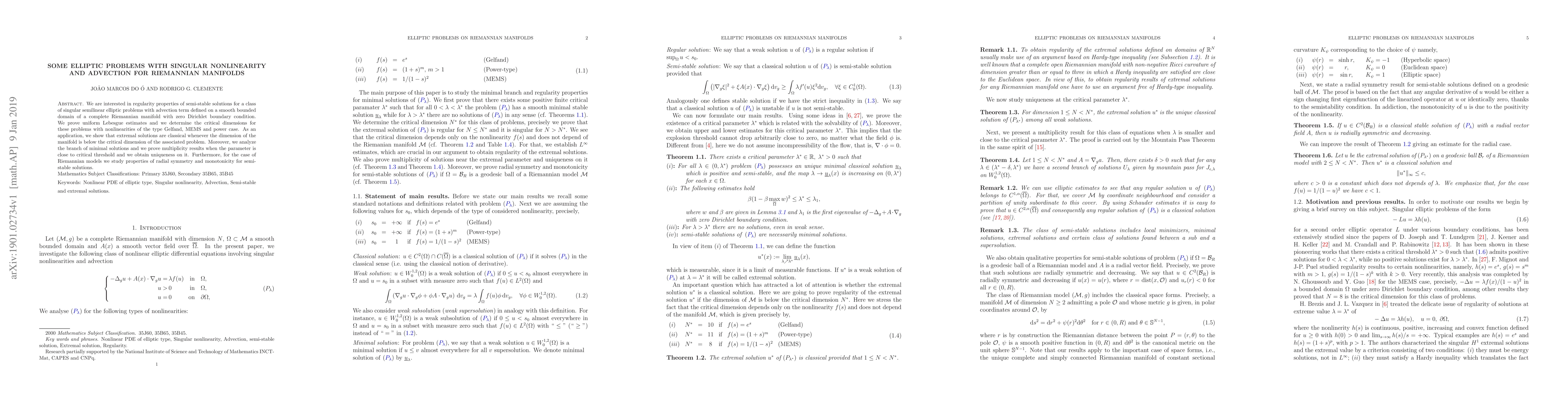 Researchers investigate regularity properties of semi-stable solutions for singular semilinear elliptic problems on Riemannian manifolds, focusing on critical dimensions, uniqueness, and multiplicity results.