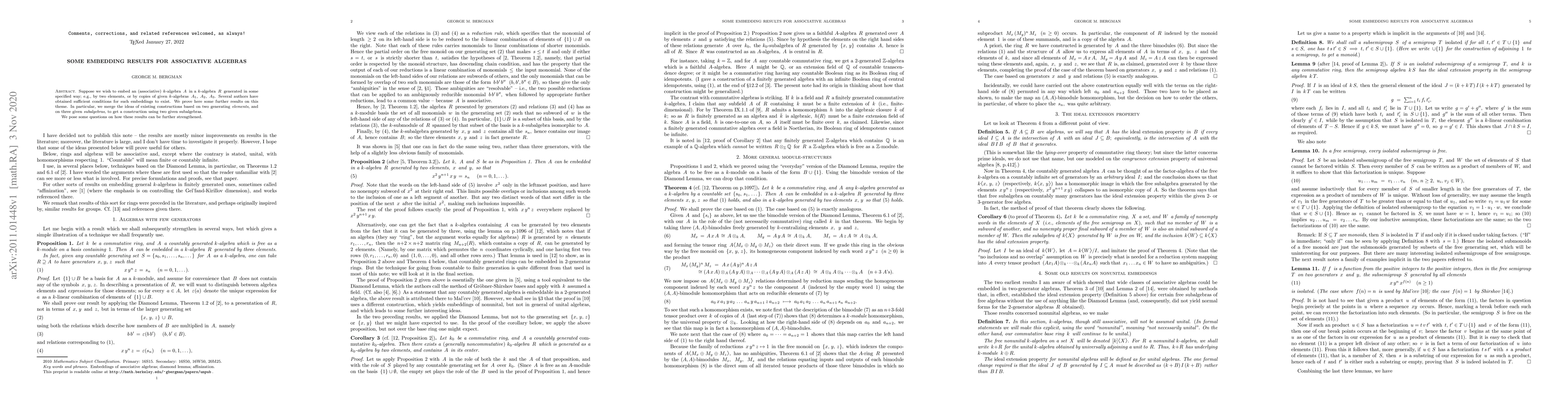This paper proves new embedding results for associative $k$-algebras, merging existing constructions based on two elements and three subalgebras into a method using two subalgebras. The authors also pose questions on potential further strengthening of these embedding conditions.