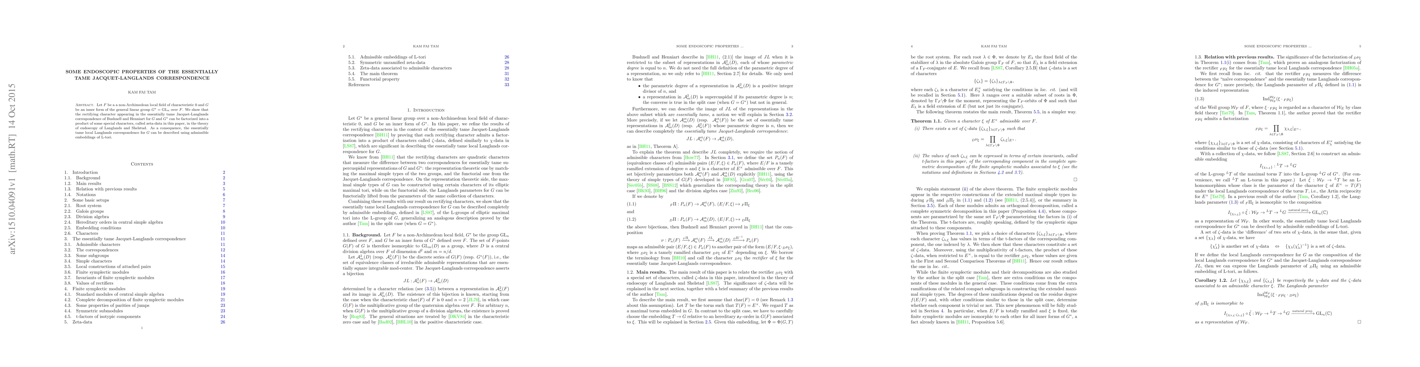 This paper demonstrates that the rectifying character in the essentially tame Jacquet-Langlands correspondence for $G$ and its inner form $G^*$ can be decomposed into special characters termed zeta-data. This factorization facilitates describing the local Langlands correspondence using admissible embeddings of L-tori in the theory of endoscopy.