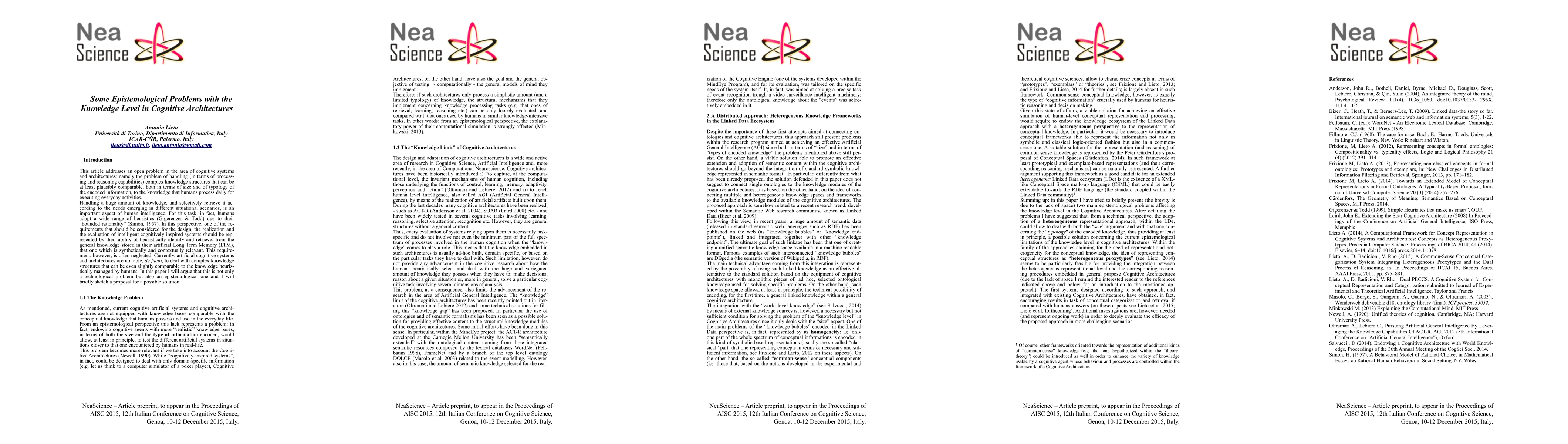 This paper discusses the epistemological challenges in designing cognitive architectures to manage complex knowledge structures comparable to human daily knowledge, highlighting the current inability of artificial systems to heuristically identify and retrieve relevant information. The author argues this is both a technological and epistemological issue and proposes a potential solution.