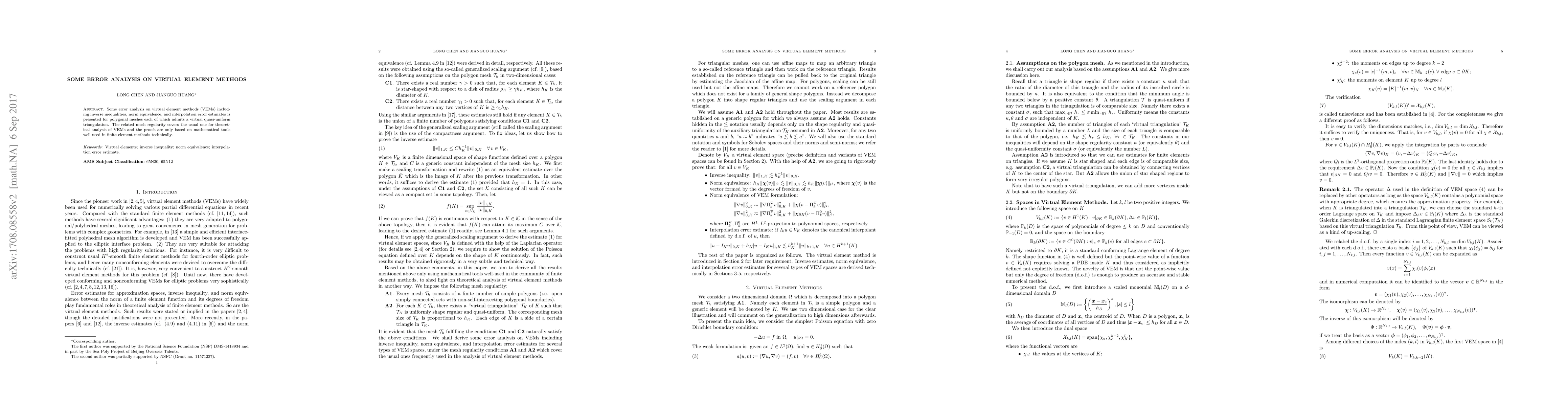 This paper conducts an error analysis of virtual element methods, focusing on inverse inequalities, norm equivalence, and interpolation error estimates for polygonal meshes that allow for virtual quasi-uniform triangulation. The study aims to enhance the understanding of the method's accuracy and efficiency.