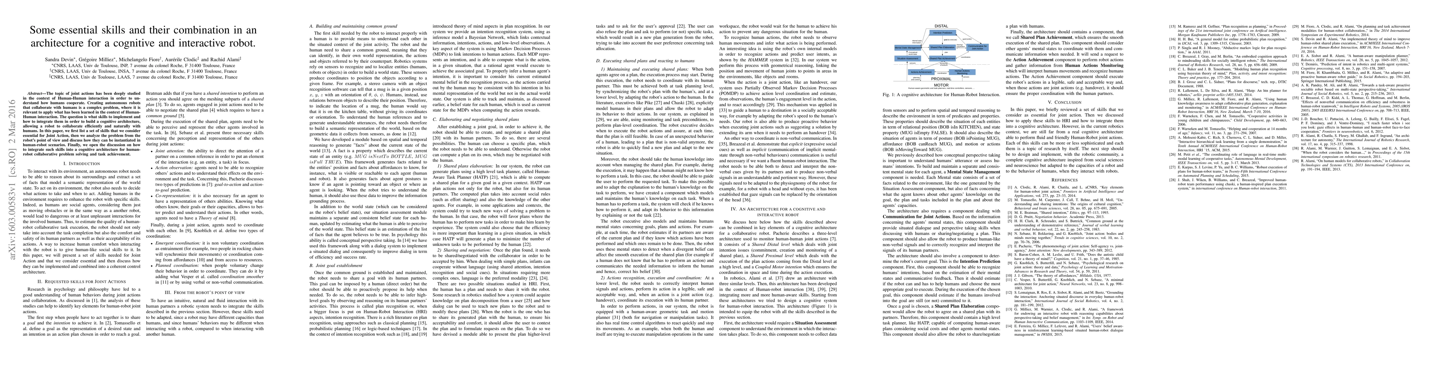 This paper explores essential skills for robot collaboration with humans, including joint actions, task achievement, and cognitive architectures. It aims to develop a framework for integrating these skills into robots to enable efficient and natural human-robot collaboration.