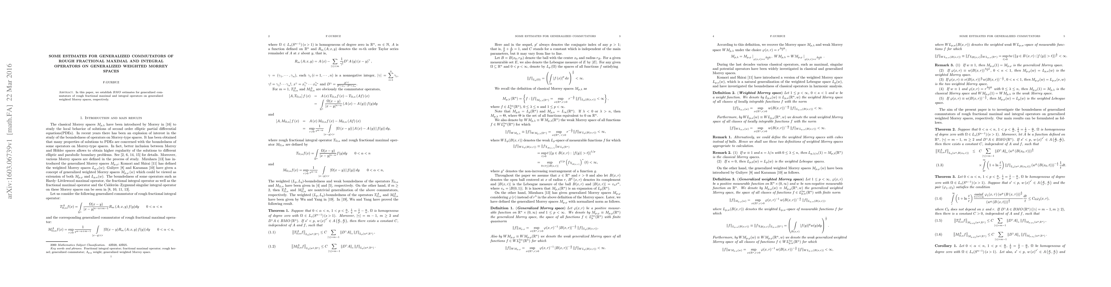 Summary: This paper provides BMO estimates for generalized commutators associated with rough fractional maximal and integral operators, focusing on their behavior within generalized weighted Morrey spaces. The results contribute to the understanding of these operators' boundedness properties.
