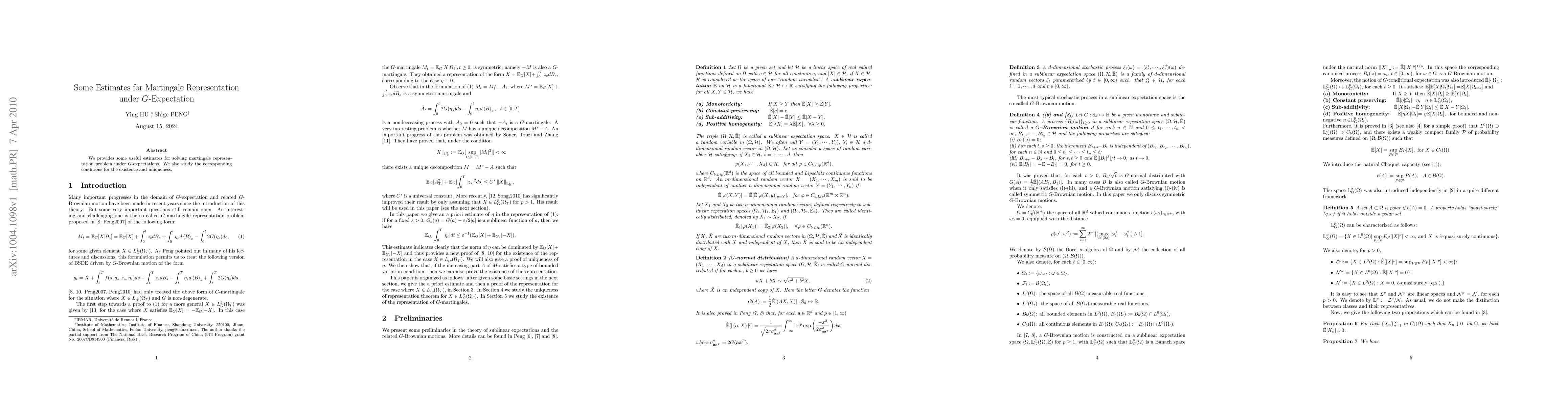 Summary: This paper offers valuable estimates for addressing the martingale representation problem under G-expectations and investigates the conditions necessary for the problem's existence and uniqueness.