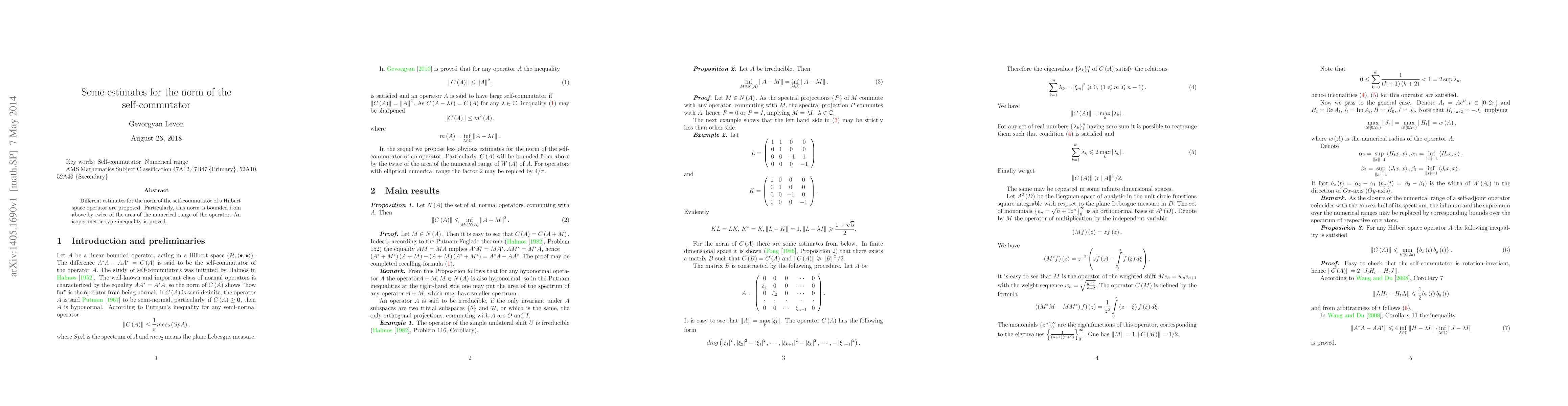 Different estimates for the norm of the self-commutator of a Hilbert space operator are proposed. Particularly, this norm is bounded from above by twice of the area of the numerical range of the operator. An isoperimetric-type inequality is proved.