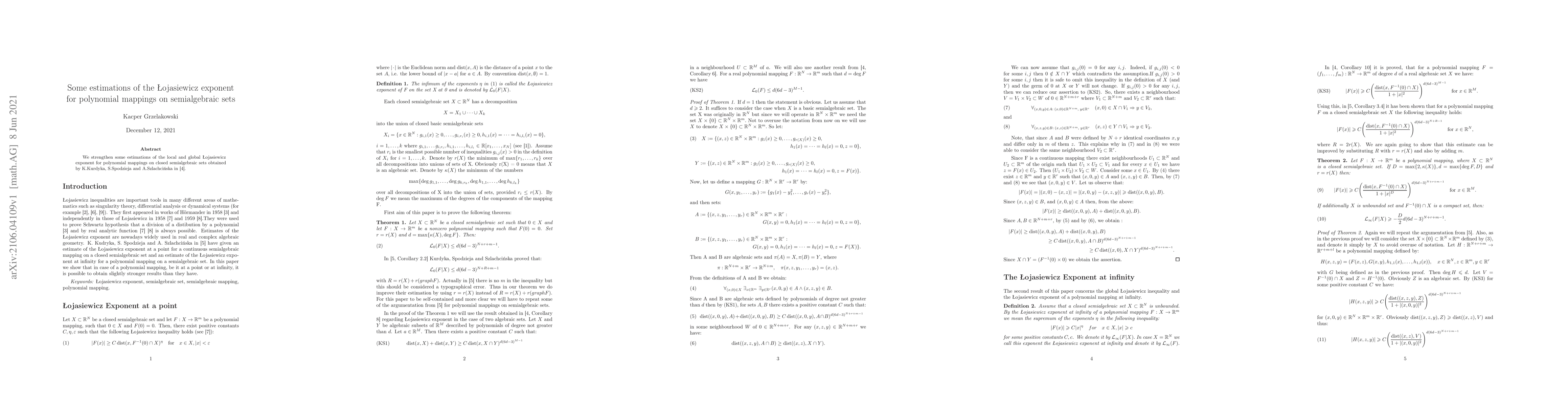 This paper refines previous estimations of the local and global {\L}ojasiewicz exponent for polynomial mappings on closed semialgebraic sets, improving upon the work done by Kurdyka, Spodzieja, and Szlachciński.