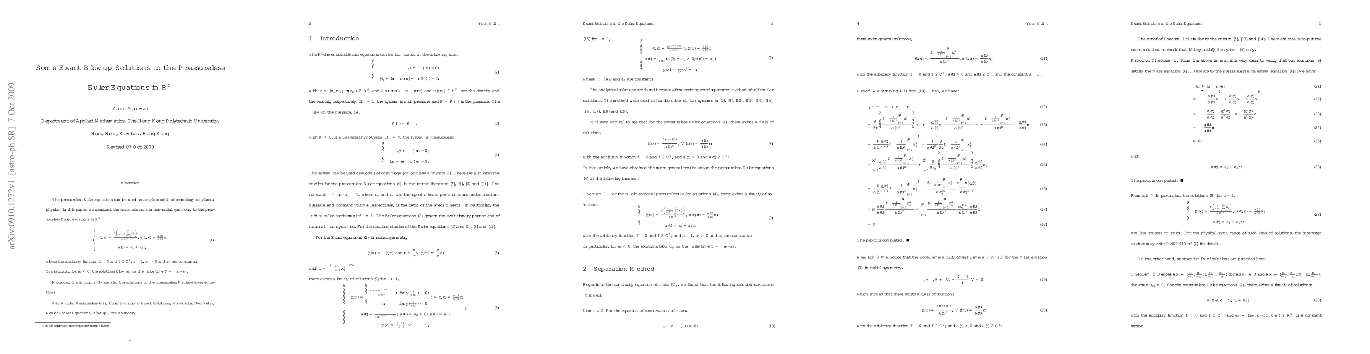 This paper constructs exact non-radial solutions to the pressureless Euler equations in $R^{N}$ with a specific form involving an arbitrary function $f$ and constants $a_{1}$ and $a_{2}$. For $a_{2}<0$, these solutions exhibit blowup at a finite time $T=-a_{1}/a_{2}$.