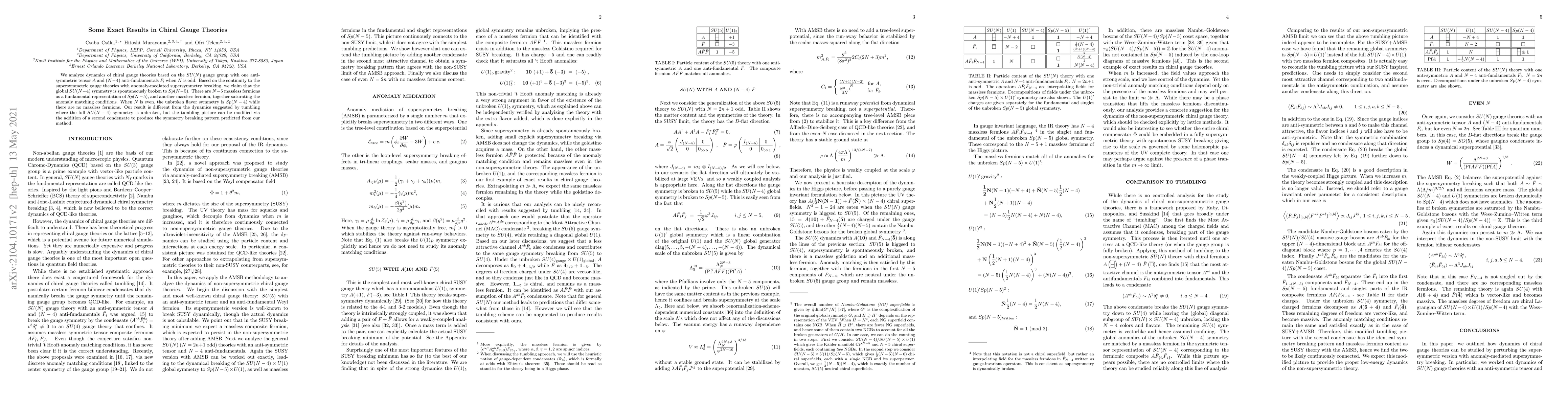 This research paper analyzes chiral gauge theories and predicts that certain symmetries are spontaneously broken in a way that differs from the 'tumbling' picture, with implications for our understanding of supersymmetry breaking.