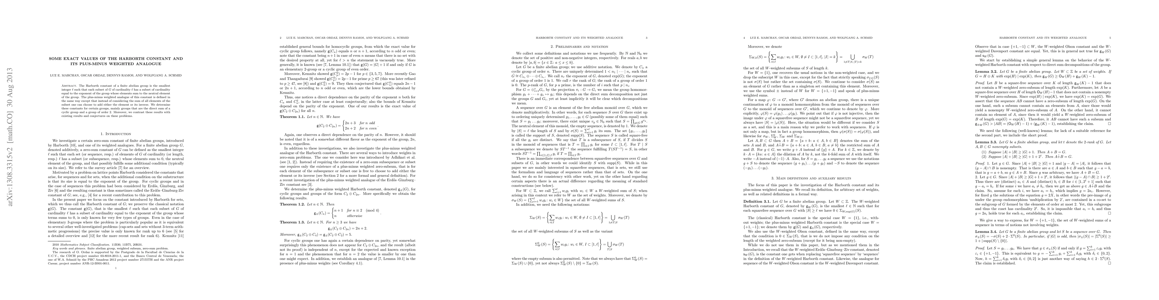 The Harborth constant of a finite abelian group is the smallest integer $\ell$ such that each subset of $G$ of cardinality $\ell$ has a subset of cardinality equal to the exponent of the group whose elements sum to the neutral element of the group. The plus-minus weighted analogue of this constant is defined in the same way except that instead of considering the sum of all elements of the subset one can choose to add either the element or its inverse. We determine these constants for certain groups, mainly groups that are the direct sum of a cyclic group and a group of order 2. Moreover, we contrast these results with existing results and conjectures on these problems.