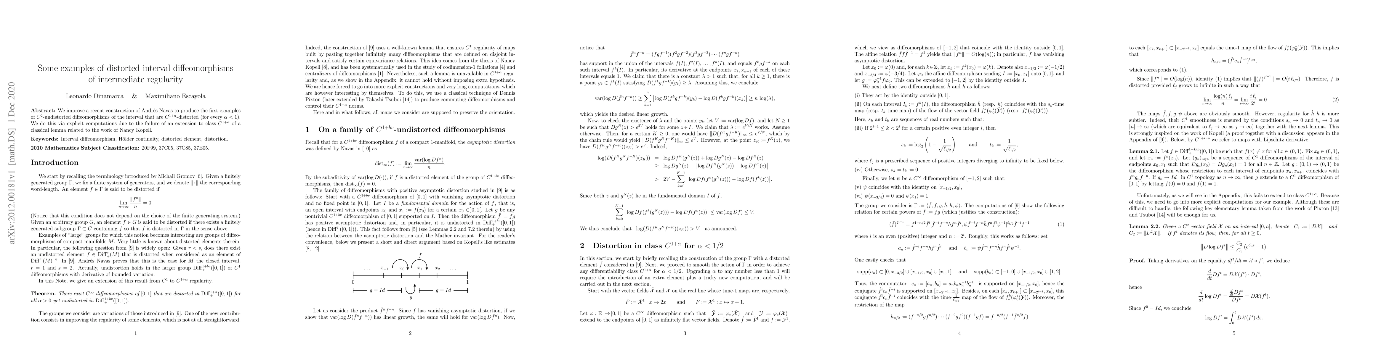 We improve a recent construction of Andr\'es Navas to produce the first examples of $C^2$-undistorted diffeomorphisms of the interval that are $C^{1+\alpha}$-distorted (for every $\alpha < 1$). We do this via explicit computations due to the failure of an extension to class $C^{1+\alpha}$ of a classical lemma related to the work of Nancy Kopell.