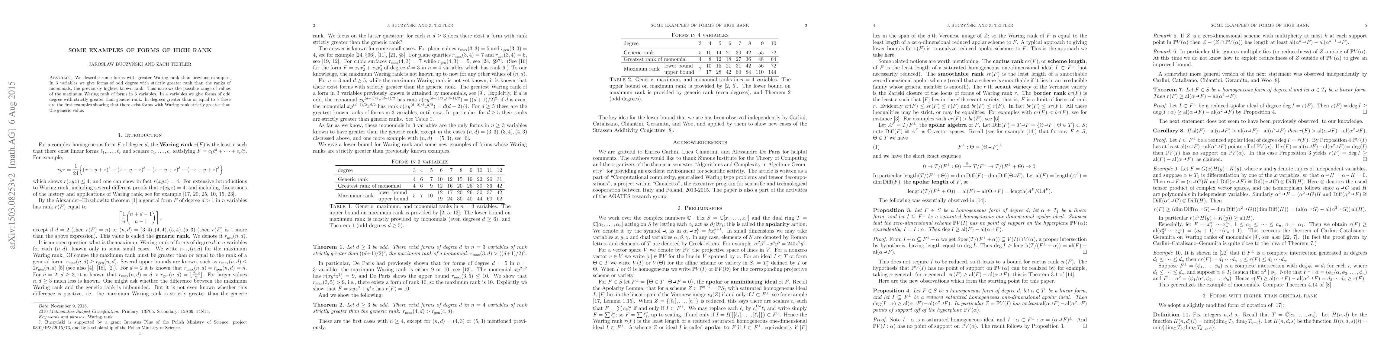 Researchers found forms in 3-variable spaces with odd degree that outperform known ranks of monomials and generic rank in higher dimensions.