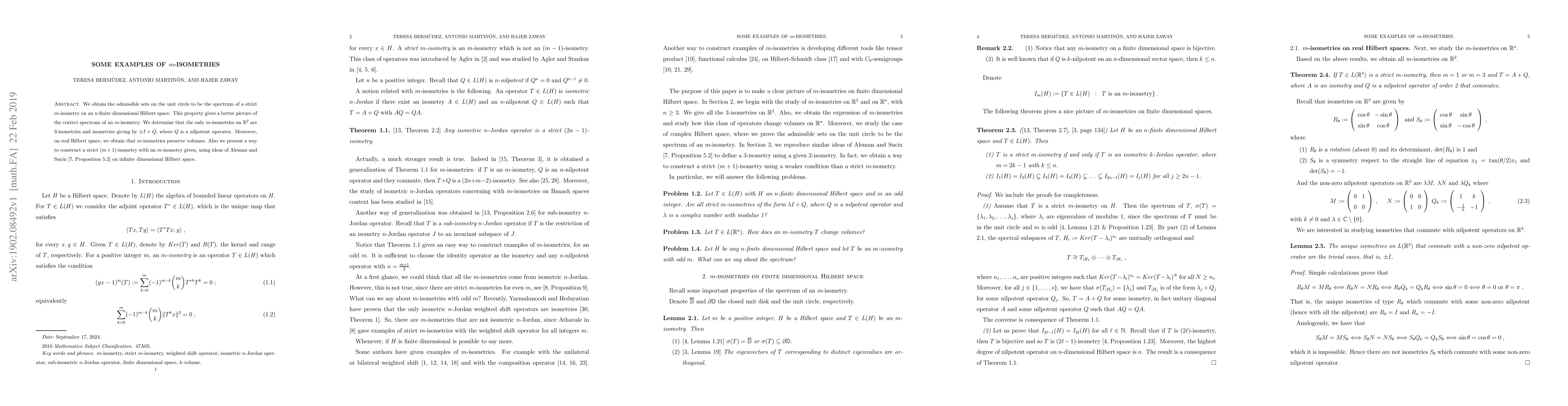 This paper explores m-isometries, finding that their spectra on n-dimensional Hilbert spaces correspond to admissible sets on the unit circle. It reveals that the only m-isometries on R^2 are 3-isometries or those of the form (pm I + Q), with Q being a nilpotent operator. The study also shows m-isometries on real Hilbert spaces preserve volumes and presents a method to construct a strict (m+1)-isometry from an m-isometry using ideas from Aleman and Suciu's work in infinite dimensional Hilbert spaces.