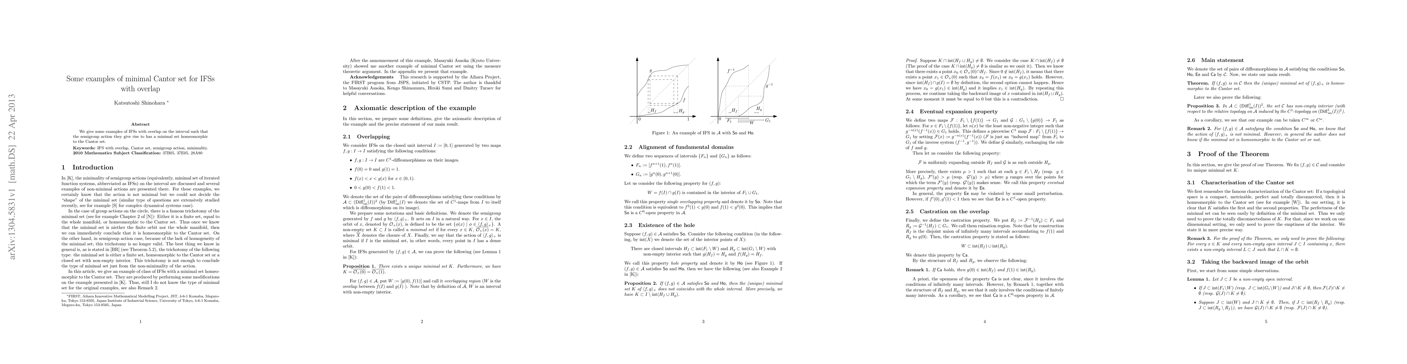 This paper provides examples of Iterative Function Systems (IFSs) with overlapping transformations on an interval, demonstrating that the semigroup actions they generate yield a minimal set homeomorphic to the Cantor set. The focus is on the construction and properties of these specific IFSs.