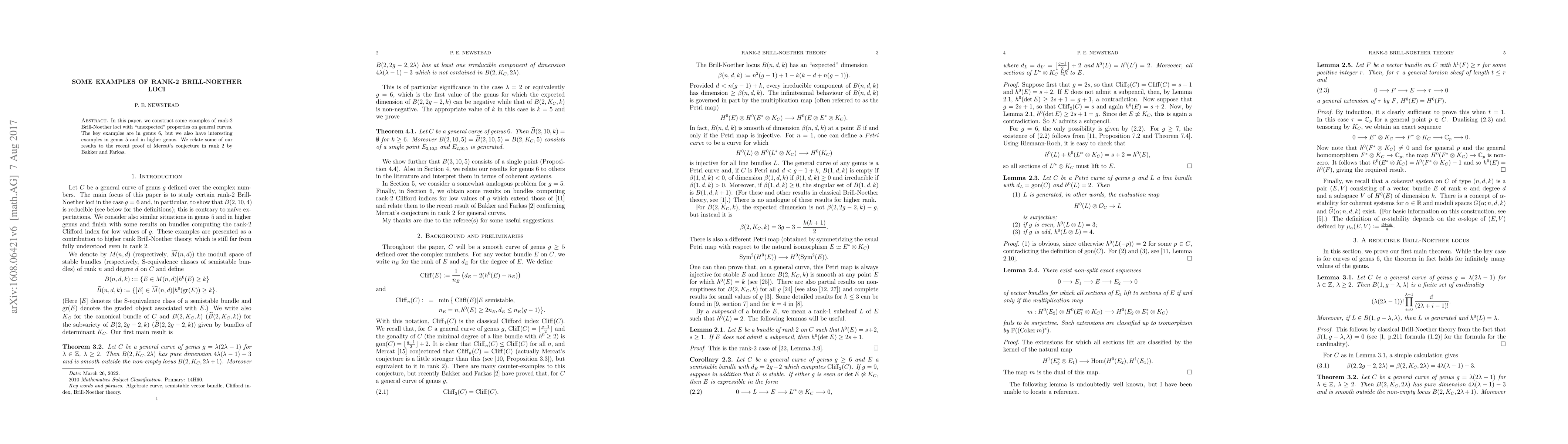 This paper constructs rank-2 Brill-Noether loci on general curves, particularly in genus 6, with unexpected properties, and also provides examples in rank 5 and higher genus. The findings relate to the recent proof of Mercat's conjecture in rank 2 by Bakker and Farkas.