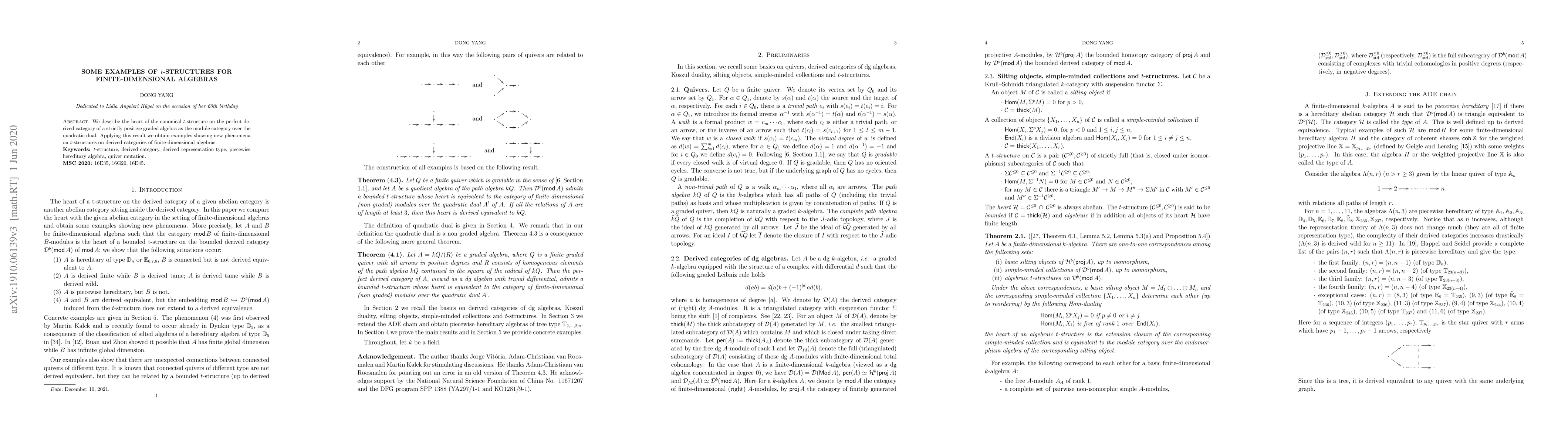 We describe the heart of the canonical $t$-structure on the perfect derived category of a strictly positive graded algebra as the module category over the quadratic dual. Applying this result we obtain examples showing new phenomena on $t$-structures on derived categories of finite-dimensional algebras.
