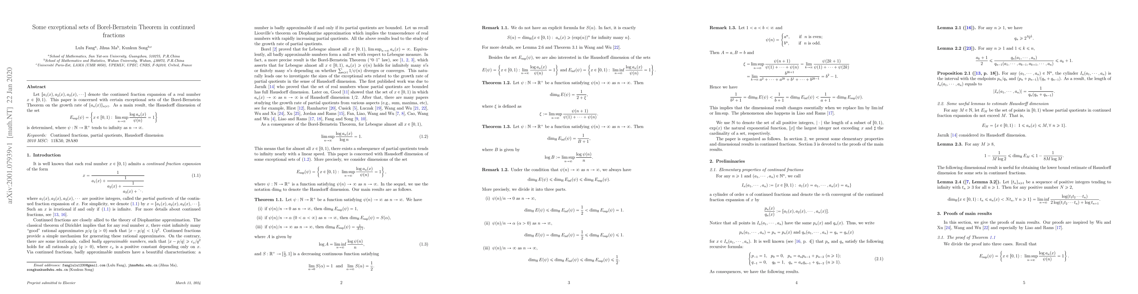 Let $[a_1(x),a_2(x), a_3(x),\cdots]$ denote the continued fraction expansion of a real number $x \in [0,1)$. This paper is concerned with certain exceptional sets of the Borel-Bernstein Theorem on the growth rate of $\{a_n(x)\}_{n\geq1}$. As a main result, the Hausdorff dimension of the set \[ E_{\sup}(\psi)=\left\{x\in[0,1):\ \limsup\limits_{n\to\infty}\frac{\log a_n(x)}{\psi(n)}=1\right\} \] is determined, where $\psi:\mathbb{N}\rightarrow\mathbb{R}^+$ tends to infinity as $n\to\infty$.