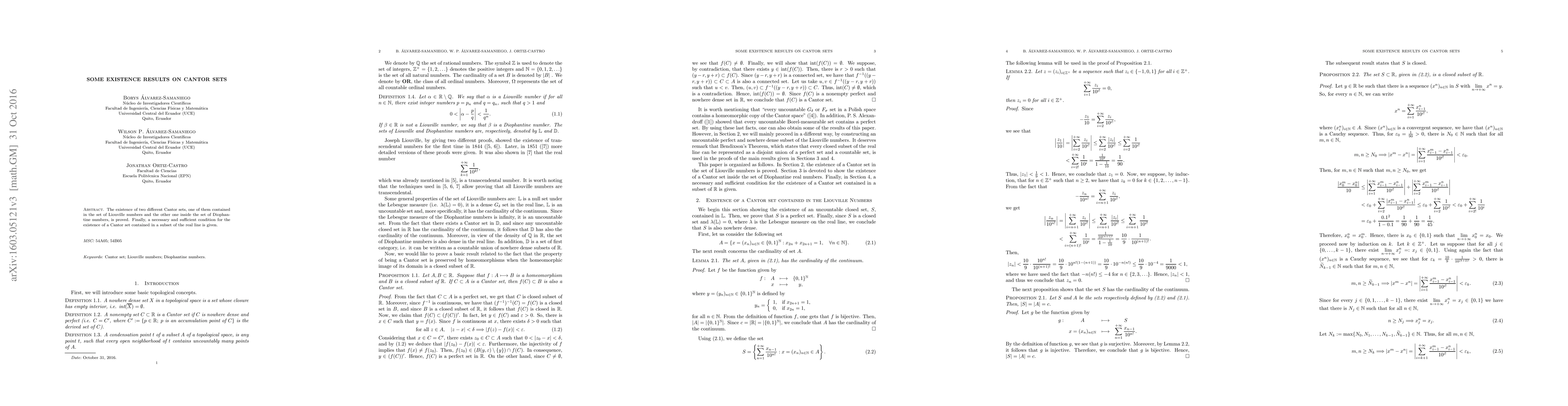 The existence of two different Cantor sets, one of them contained in the set of Liouville numbers and the other one inside the set of Diophantine numbers, is proved. Finally, a necessary and sufficient condition for the existence of a Cantor set contained in a subset of the real line is given.